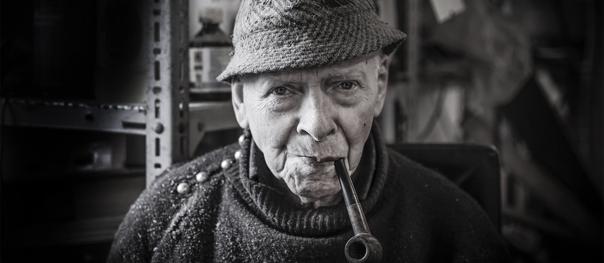 Svarið var Olaf Haldansen í Vestmanna. Maðurin fylti 90 ár í desembur og er still going strong. Tá ið eg komi inn á verkstaðið, síggi eg beint á hann. Hann situr í einum króki beint framman fyri altanhurðini, haðani hann hevur vítt og frítt útsýni inn á Fjørð. Eg leggi til merkis kaffikrússið, pípuna og hattin – og radio er for frá við við tónleiki, sum Olaf valla hevur valt sjálvur.