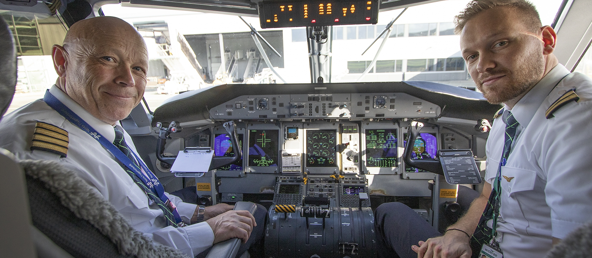 Frammi í cockpittinum sótu teir báðir, Geir Skjetne og Erland Sletten í flogskiparasetrunum. Hóast Geir Skjetne hevur drúgvar royndir sum flogskipari, hevur flogið í yvir 30 ár og eini 25 við Widerøe, so hevur hann ikki verið í Føroyum fyrr. Heldur ikki Erland Sletten, sum er nakað yngri og hevur flogið í umleið 10 ár.