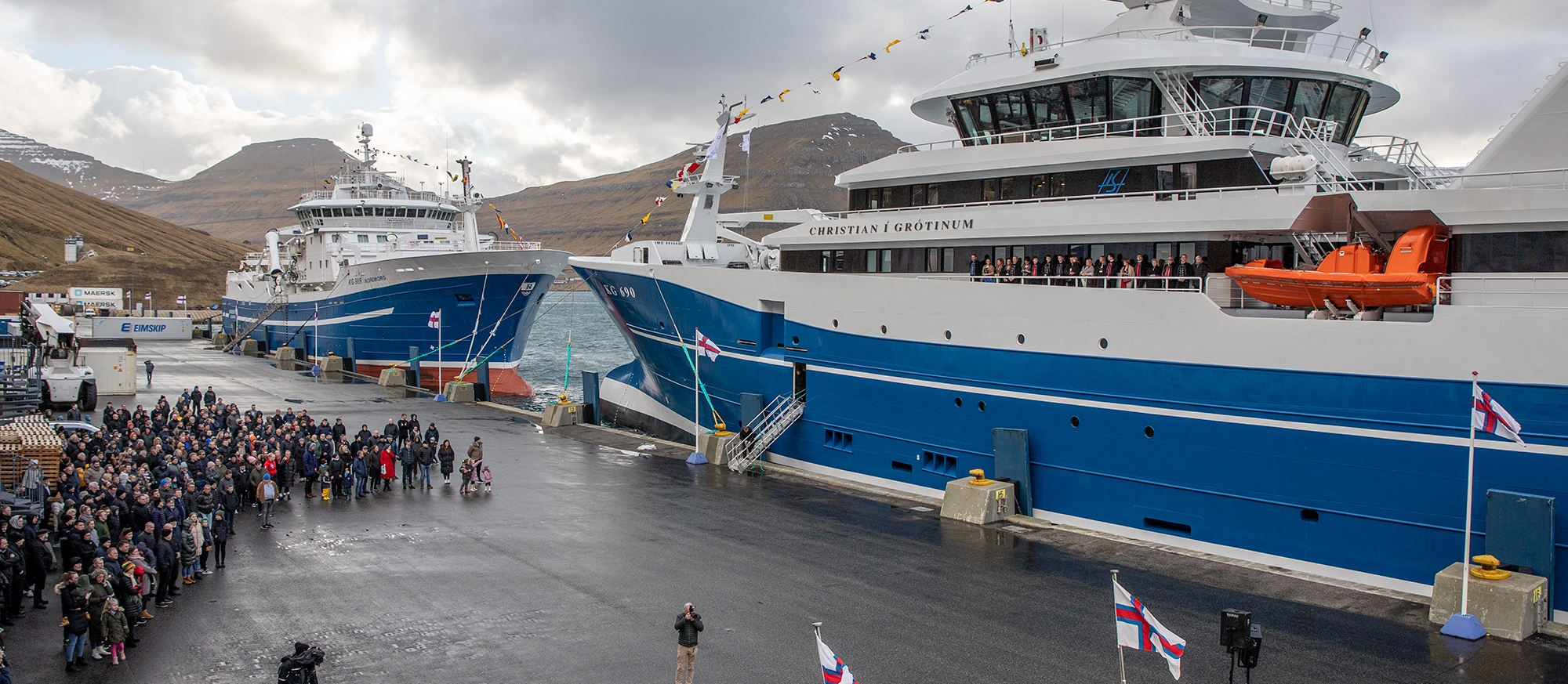 Seinnapartin mikudagin kom Christian í Grótinum, nýggjasta og flottasta skipið í flotanum, á Ánirnar