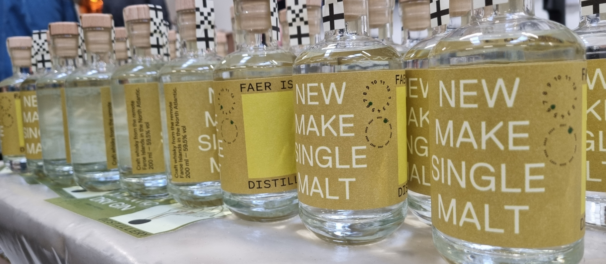 Fyrstu royndirnar við at framleiða whisky á Faer Isles Distellery eru gjørdar, og blankur løgur er nú klárur at fylla í amerikanskar eikitunnur, so at tær kunnu búnast til gylt whisky um trý ár, minst.