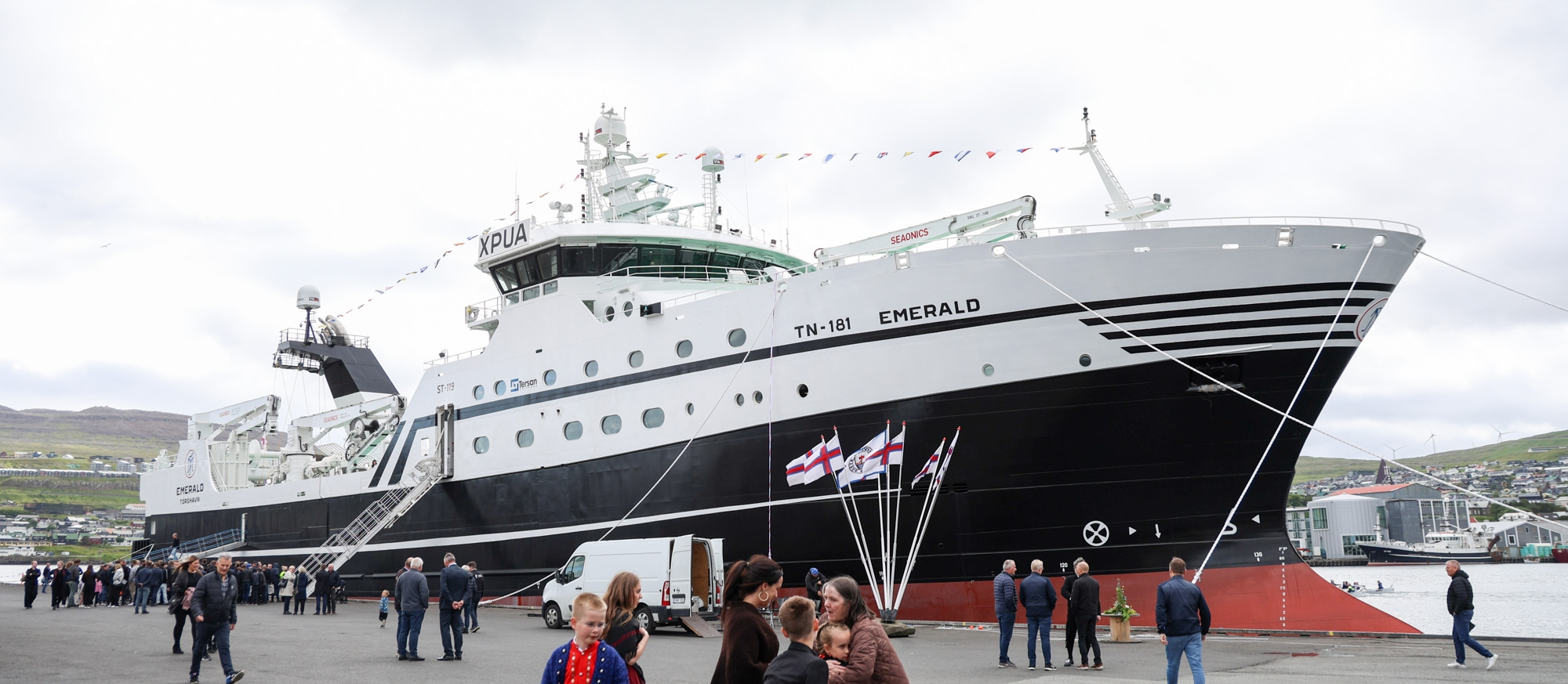 Emerald kom hósdagin á Havnina á fyrsta sinni, og stórur hátíðardámur settist yvir løtuna, tá ið Føroya nýggjasta fiskiskip kom heim til Føroya úr Turkalandi.