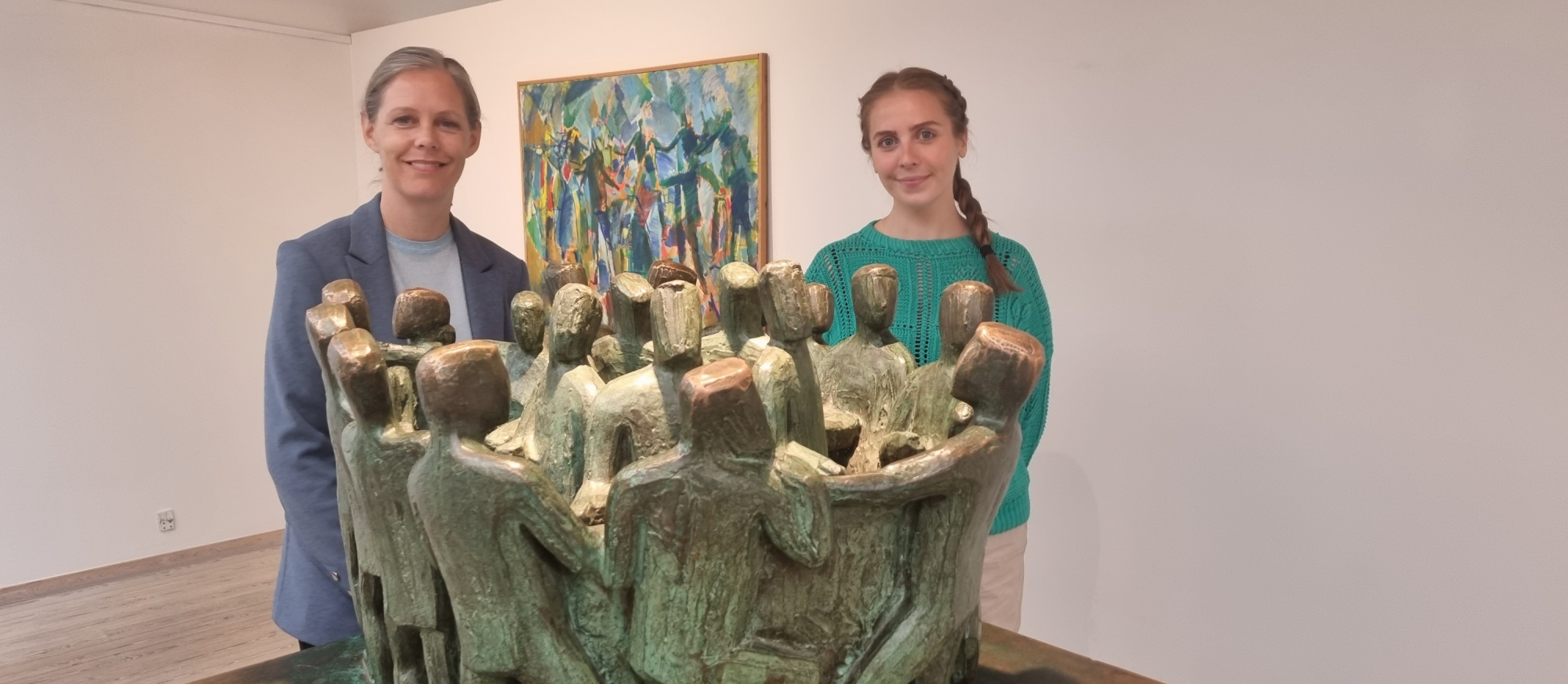 Framsýningin er í ‘gamla’ listaskálanum, ið verður brúktur til tær skiftandi framsýningarnar. Fyrstu listaverkini, sum møta tær, eru málningar av føroyskum dansi, og hartil er tað lukkast savninum at læna kenda dansiringin hjá Janusi Kamban, sum flest okkara kenna frá avgreiðsluni í Føroya Banka, nú BankNordik.
