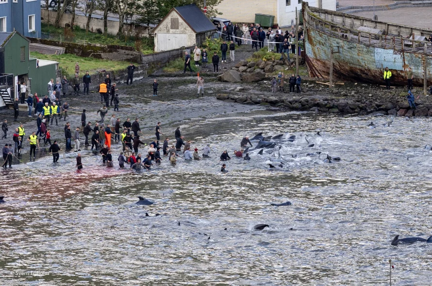 Tá samanumkom løgdu 285 hvalir beinini á sandinum í Fuglafirði. Umframt dráps- og heimapartar, var møguleiki hjá fólki arðastaðni frá at koma og fáa sær eisini.